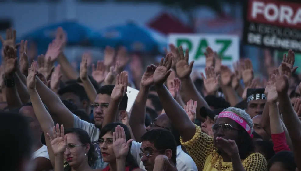 6- O que explica a centralidade neste movimento de um pastor que autodeclaradamente não tem mais que 100 mil seguidores? Qual a articulação que existe que torna a multiplicidade de denominações e estruturas, incluindo ruidosas disputas, um bloco tão coeso em torno dos mesmos candidatos e líderes? Como funciona “o partido” no sentido gramsciano? E qual o programa real deste “partido”? Porque não é “liberdade de expressão”, “democracia”, ser contra o aborto e contra os direitos de minorias sexuais como aparece no filme. É importante que este diga que eles querem o poder, mas é importante também que se tente entender “para quê”. Qual é a relação, por exemplo, deste bloco político com o projeto neoliberal e as elites econômicas? Cada vez mais ricos se convertem e a “prosperidade” teologizada é sim um componente fundamental, ainda que não explique a forma política final sozinha, da totalidade do sentido do bloco.