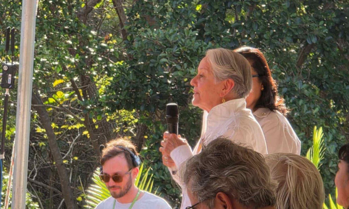 Foto: A viúva Lélia Salgado disse, na cerimônia deste sábado (16/8), que a peroba adubada com as cinzas de Sebastião Salgado será a mais alta do Instituto Terracrédito: Afonso Borges/acervo pessoal