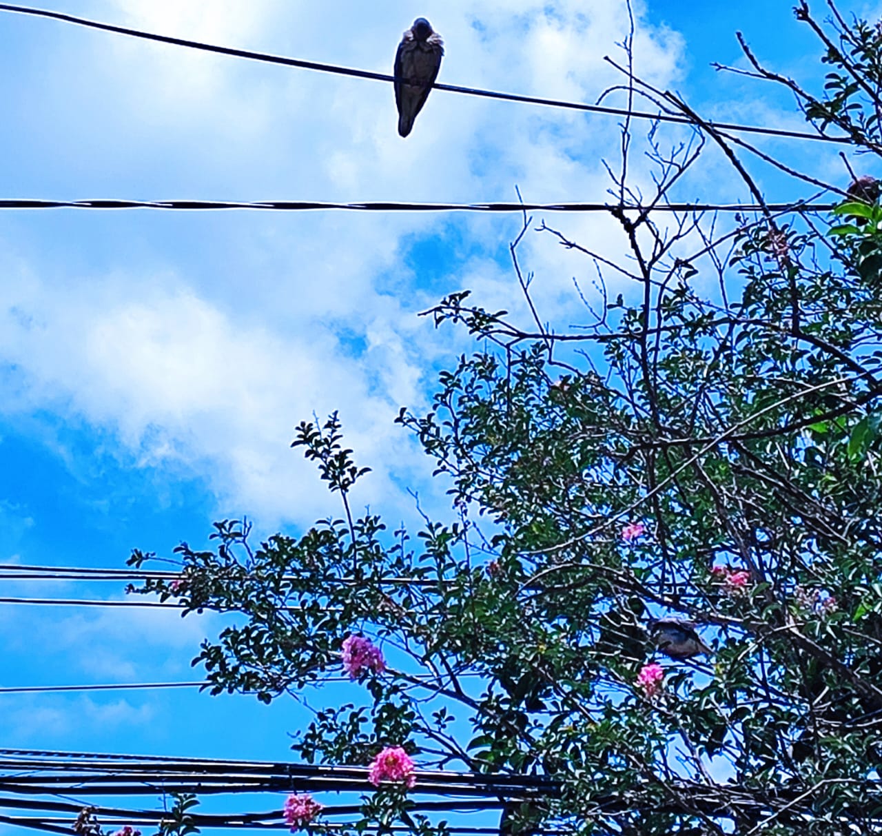 Os sabiás constroem seus ninhos no topo das colunas da varanda. Devem intuir que esse lugar é protegido dos temporais e das ventanias.
