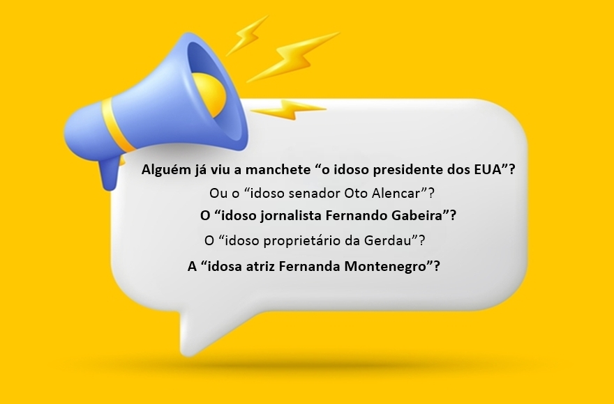 Alguém já viu a manchete “o idoso presidente dos EUA”? Ou o “idoso senador Oto Alencar”? O “idoso jornalista Fernando Gabeira”? O “idoso proprietário da Gerdau”? A “idosa atriz Fernanda Montenegro”?