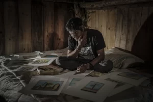 José Verá, 75 anos, desenha a natureza e a criação do universo segundo a mitologia Guarani Por Karine Dalla Valle, Matinal