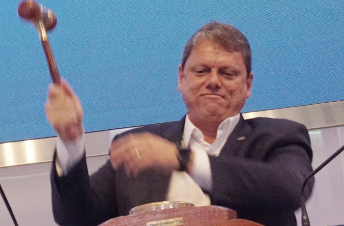 Foto: Tarcísiio de Freitas bate martelo em leilão de empresa pública - Rogério Cassimiro/Governo de SP - arquivo